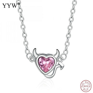 Nuova collezione Genuino argento sterling 925 Dolce cuore del diavolo Collana con pendenti in cristallo rosa per le donne Gioielleria raffinata 2017