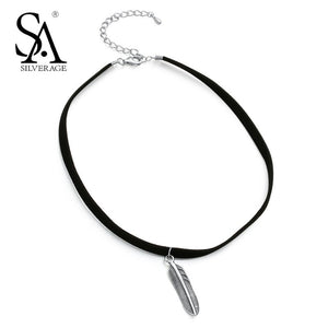 Vintage 925 Silver Feather Choker Leaf Necklace Black Leather Chain Women Chocker Sexy Gothic Steampunk Jewelry