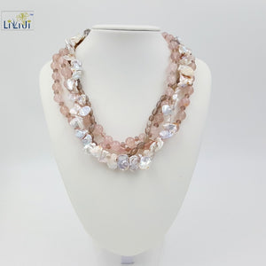 Natural Chalcedony , Keshi Pearl ,Grey Agate 4 Strands with 925 sterling silver Clasp Fashion Women Jewelry Necklace