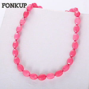 Forkup Collana di calcedonio naturale Donna Catena corta Catena di perline di cristallo Ornamento vintage Accessori femminili Catena di corda geometrica