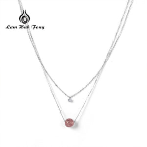 Collana di quarzo fragola di cristallo naturale dell'argento sterlina S925 di vendita calda Collane a doppia catena della clavicola per i gioielli delle donne