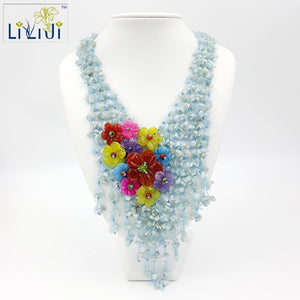 Acquamarina naturale, agata, fiori di giada colorata con chiusura a ginocchiera in giada Collana fatta a mano lavorata a maglia Gioielli da donna di moda per il matrimonio