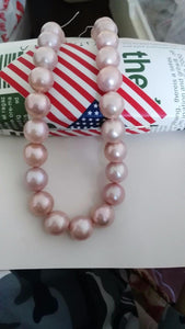 10-11 mm Genuine Natural south sea pink pearl necklace 18 14 K gold