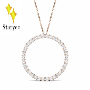Genuine 18K Solid Rose Gold Moissanite Bezel Set Circle Necklace Pendant With 18K Gold Chain For Women Fine Jewelry