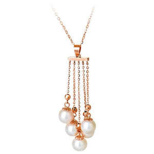 Collier Femme Necklace Women 5.5-6mm Pearl Tassel Necklaces & Pendants Statement Necklace Collares Women 18K Gold