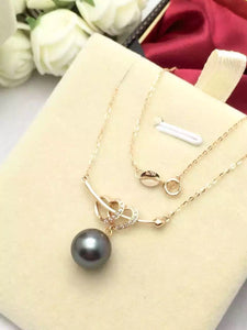Diamond Setting Tahiti Black Pearl Pendant Necklace Double Hearts and Arrow Natural Diamond Handmade Jewelry