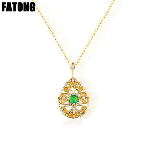 New 925 sterling silver ethnic style retro emerald water drop personality wild necklace female J0224