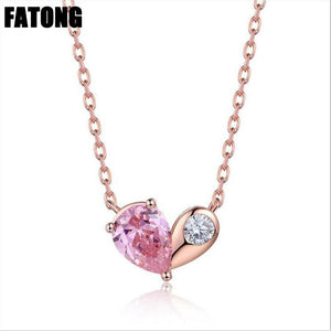 New 925 sterling silver fashion pink zircon girl heart necklace jewelry J0213