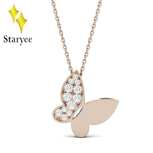 Real 18K 750 Rose Gold Butterfly Pendant GH Color Lab Grown Moissanite Diamond Pendant Necklace for Women Fine Jewelry