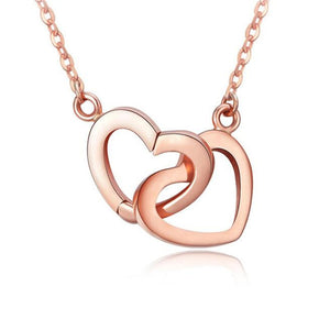 Romantic Double Hearts Necklaces Pendant Rose Gold Color 18K Gold Jewelry Chain for Women Valentine's D Gifts