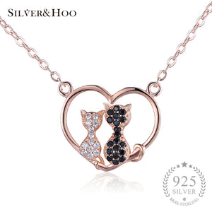 Rose Gold Pendant Necklace Lovely Cats Heart Design 925 Sterling Silver Women Heart Necklaces Collier Gift