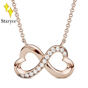 Test Positive Forever One Charles Colvard 0.12CTW Round Cut Moissanite Infinity Heart Necklace with Real 18K Solid Rose Gold
