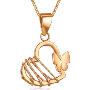 Wholesale 18K Gold Pendant AU750 18K Gold Jewelry Butterfly Heart Pendants Necklace For Women/Men + Link Chain