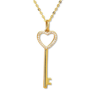 Fashion Necklace For Women 18K Gold AU750 Lovely Heart Key Queen Crown Pendant Wedding Gifts Angel Girls Necklace Pendant