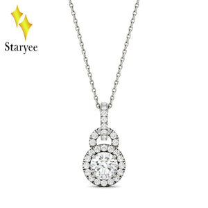 Moissanite Engagement Weeding Brand Drop Halo Pendant Charms Necklaces Real 18K Solid White Gold Women Fine Jewelry
