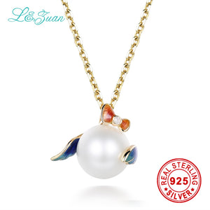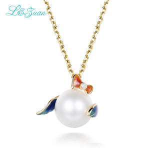 Brand Luxury fine real enamel natural diamond pearl pendant & 18 k gold necklace fine jewelry for women