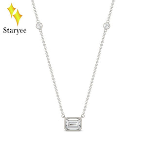 Moissanite Necklace 1.05CTW Emerald Cut Moissanite East-West Solitaire with Side Accents Lab Diamond Necklace 18K White Gold