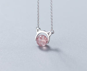 100% REALE. Pietra di quarzo fragola naturale in argento sterling 925 FINE Jewelry nel ciondolo della collana del gatto gattino adorabile GTLx1704