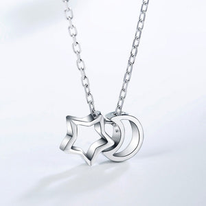 Fashion 925 Sterling Silver Moon Star Penadnt Necklaces For Women Romantic Anniversary Birthd Gift Fine Jewelry TWED205D