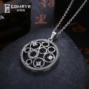 Collana con pendente rotondo cavo con zircone di lusso per regalo da donna Gioielleria raffinata vintage retrò in argento sterling 925