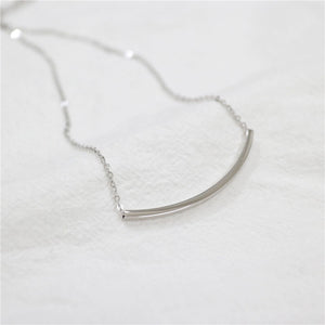 New Sterling Silver Jewelry Necklaces & Pendants 100% 925 Sterling Silver Curved Tube Bar Pendant Necklace For Women