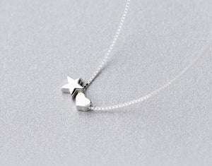 Bello vero. Gioielli in argento sterling 925 Collana con ciondolo a forma di cuore e stella lucida, catena da 18 pollici, regalo GTLX709