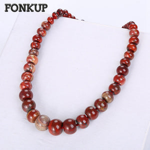 Forkup Red Bead Chain Women Power Necklace Natural Jasper Stone Jewelry Bohemia Femme Sautoir Anniversary Round Rolo Chain Reiki