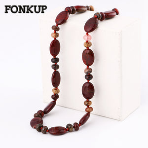Red Jasper Necklace Statement Women Jewelry Bead Chain Pendant Stone Sautoir Perles Long Femme Trendy Water Drop Sieraden
