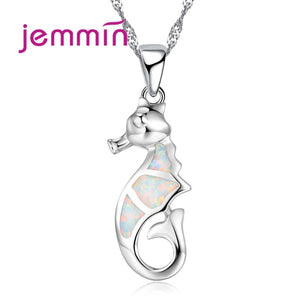 Collana con animali di marca Ciondoli con design a forma di cavalluccio marino Collana con pendente in argento sterling 925 con opale bianco per gioielli da festa da donna