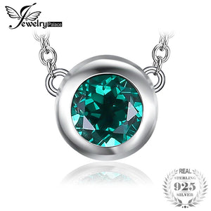 Solitario rotondo da 1,2 ct nano russo simulato smeraldo collana di fidanzamento gioielli in argento sterling 925 catena da 45 cm