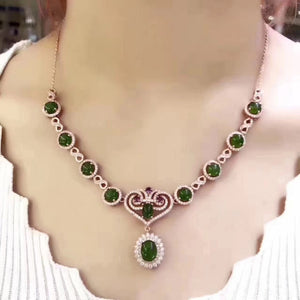 Natural green jasper Necklace natural gemstone Pendant Necklace S925 silver Luxury fashion water Drops women party fine Jewelry