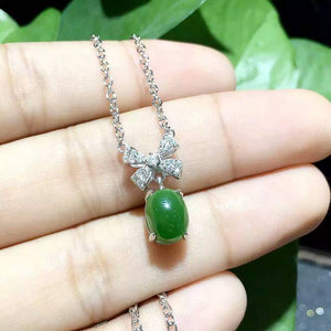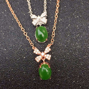 Natural green jasper Necklace natural gemstone Pendant Necklace S925 silver women Child Fashion Elegant bow butterfly Jewelry