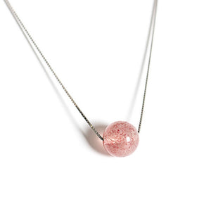 Strawberry Quartz Pendant Necklace Tiny Pink Round Ball Charm Pendant Chokers Necklace in 925 Sterling Silver Holid Gift