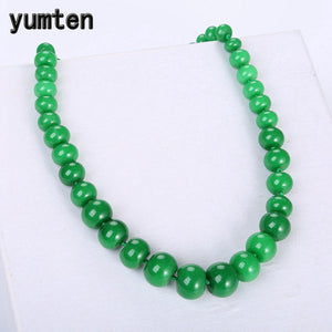 Green Jasper Necklace Bohemia Women Pendant Jewellery Female Short Chain Party Ornament Round Rolo Chain Thick Bead Joyas