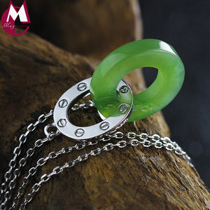 Collana di diaspro verde naturale Collana con pendente in pietra preziosa naturale S925 Argento sterling alla moda Gioielli da donna per feste da scimmia da giardino