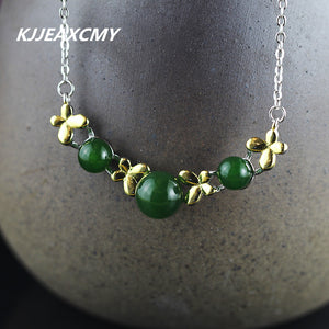 Natural green jasper Necklace natural gemstone Pendant Necklace S925 silver trendy Luxury big butterfly women party fine Jewelry