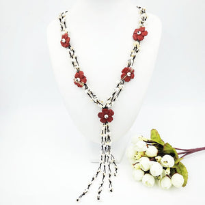 Conchiglia in pietra naturale, fiori di diaspro rosso, perla con collana di chiusura a ginocchiera in giada circa 60 cm Gioielli da donna di moda