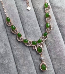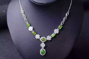 Collana di diaspro verde naturale Collana con pendente di pietre preziose naturali S925 Argento sterling trendy ed elegante Fiori da donna Gioielli da festa