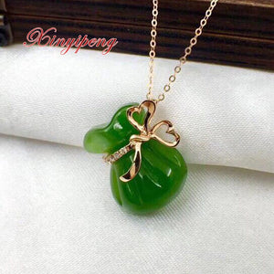 Xin yi peng collana con pendente in giada intarsiata in oro rosa 18 carati, donna naturale, lusso alla moda, regalo di anniversario