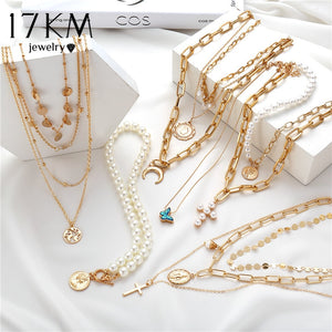 17KM Multilayer Crystal Moon Necklaces & Pendants For Women Vintage Charm Gold Choker Necklace 2020 Bohemian Jewelry Wholesale