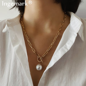 Baroque Pearl Pendant Choker Necklace for Women Wedding Punk Big Bead Lariat Gold Color Long Chain Necklace Jewelry