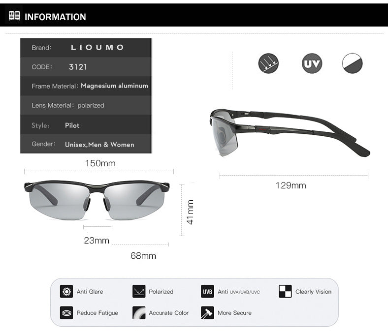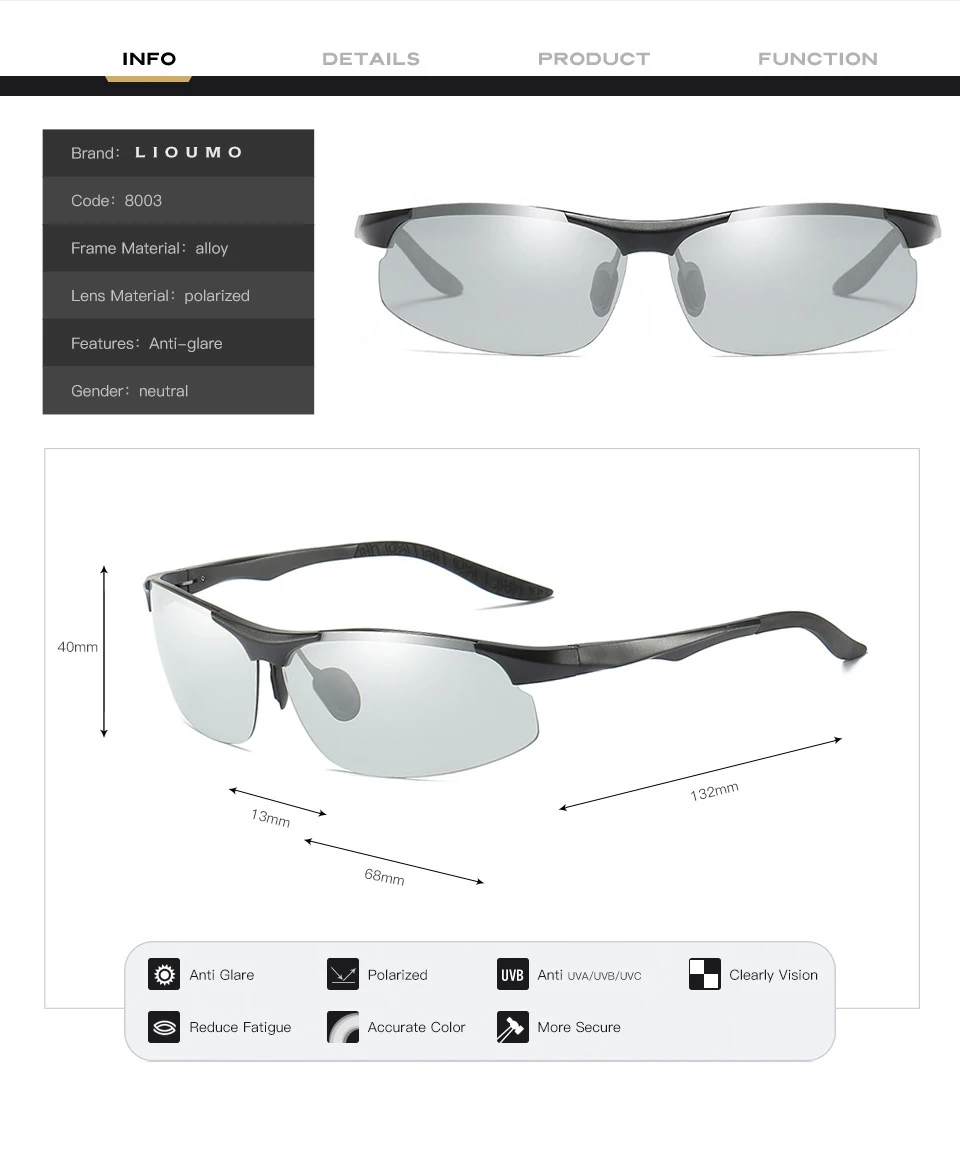 3PCS Combinato LIOUMO Occhiali Da Sole Polarizzati Fotocromatici Per Gli Uomini Piazza Guida Occhiali Da Sole Donne Occhiali lentes de sol UV400