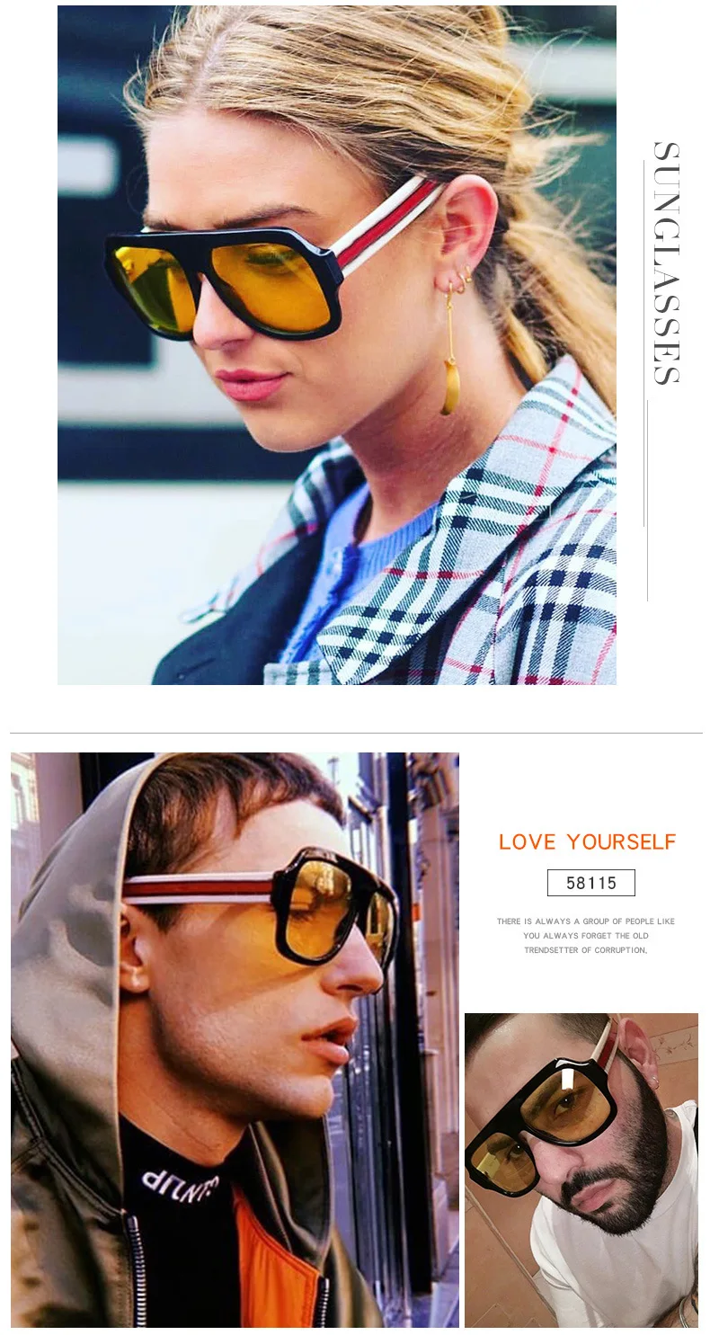 Grandi occhiali da sole oversize Uomo Donna Occhiali da sole GG da uomo gialli per uomo Donna Occhiali da sole in plastica retrò Occhiali da sole alla moda rosa Oculos