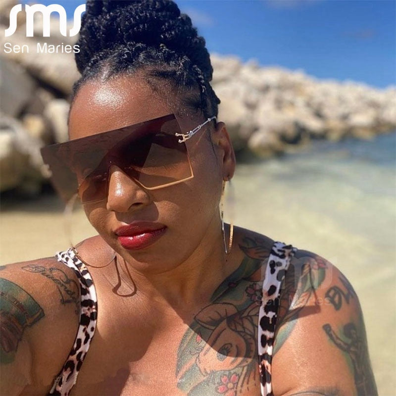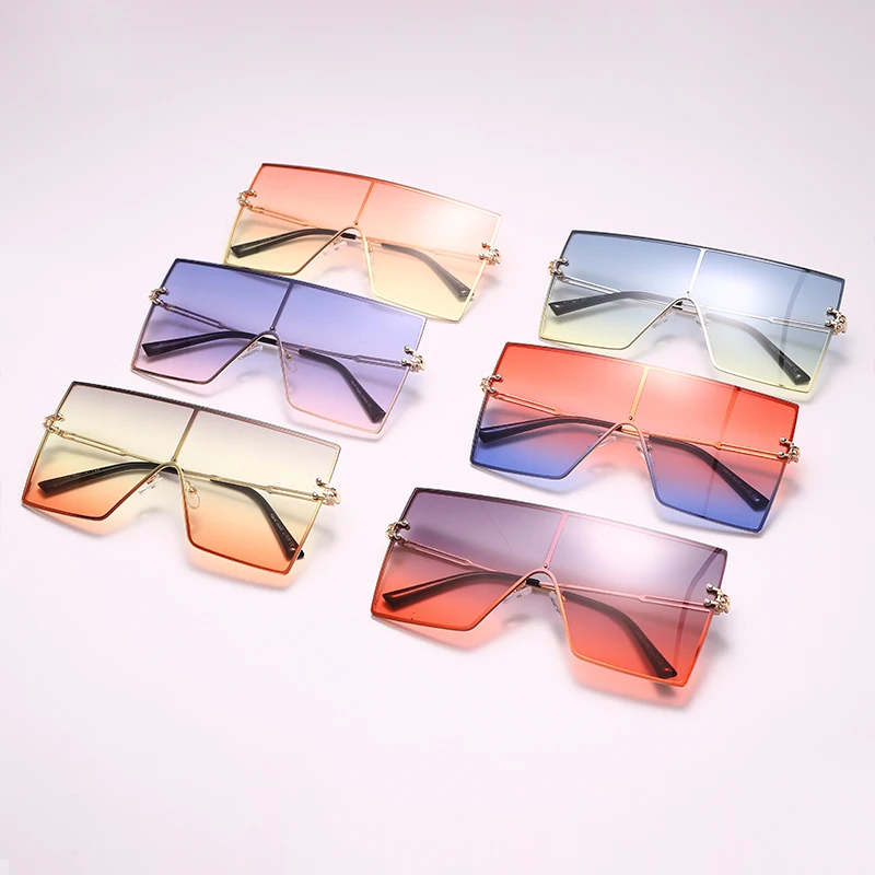 One Piece Flat Women Punk Sunglasses Oversized Rimless Gradient Sun Glasses Men Goggle Shades UV400 Female  Eyewear Gafas De Sol