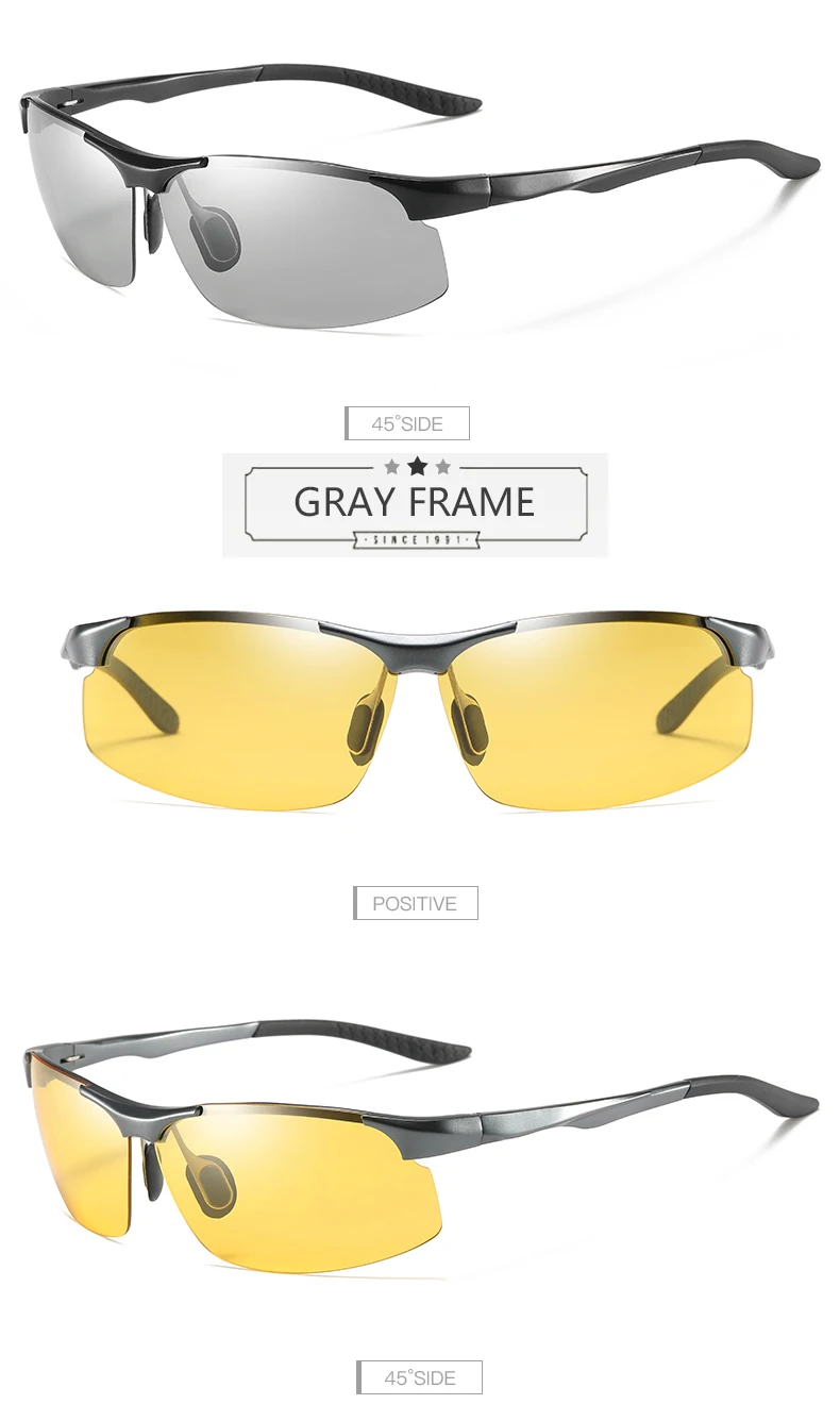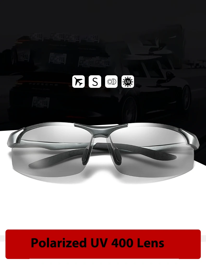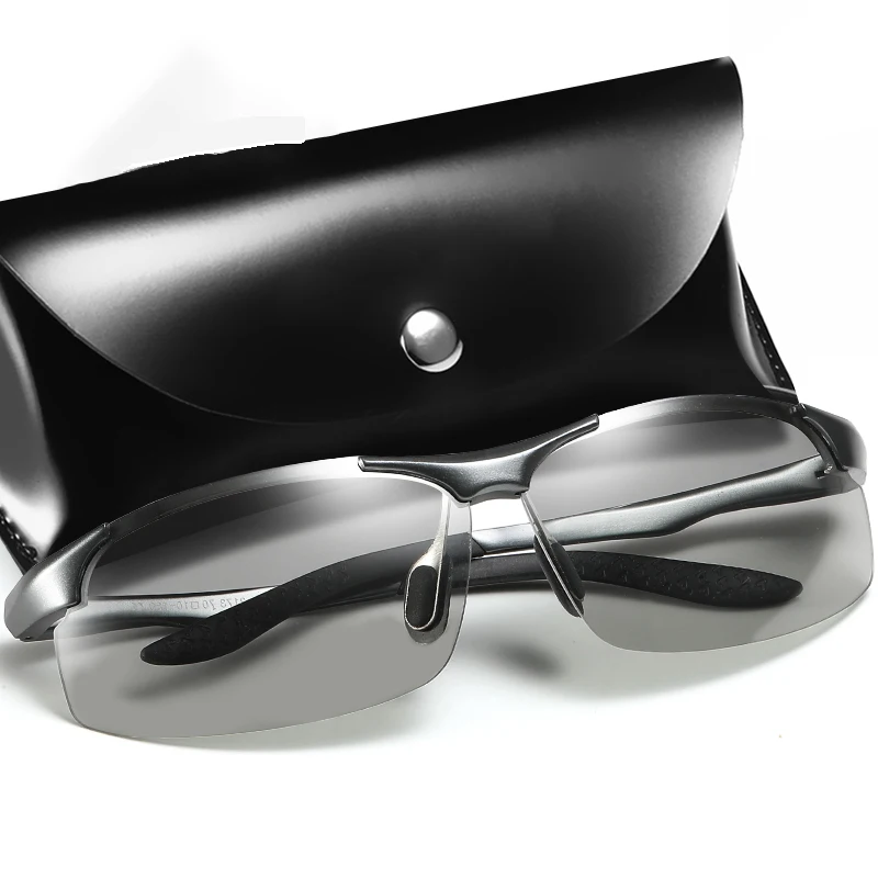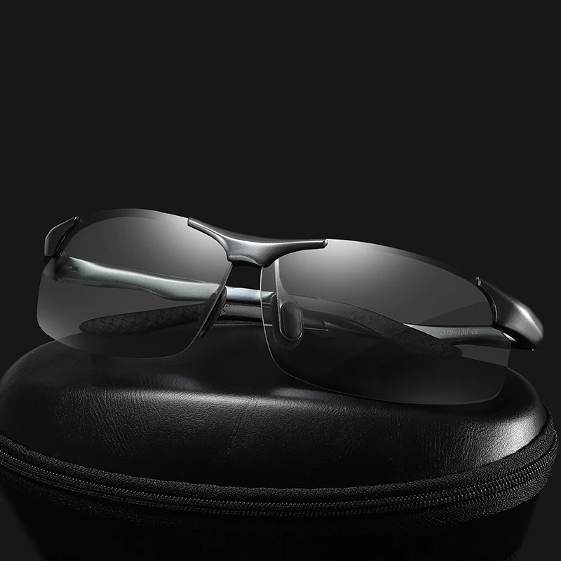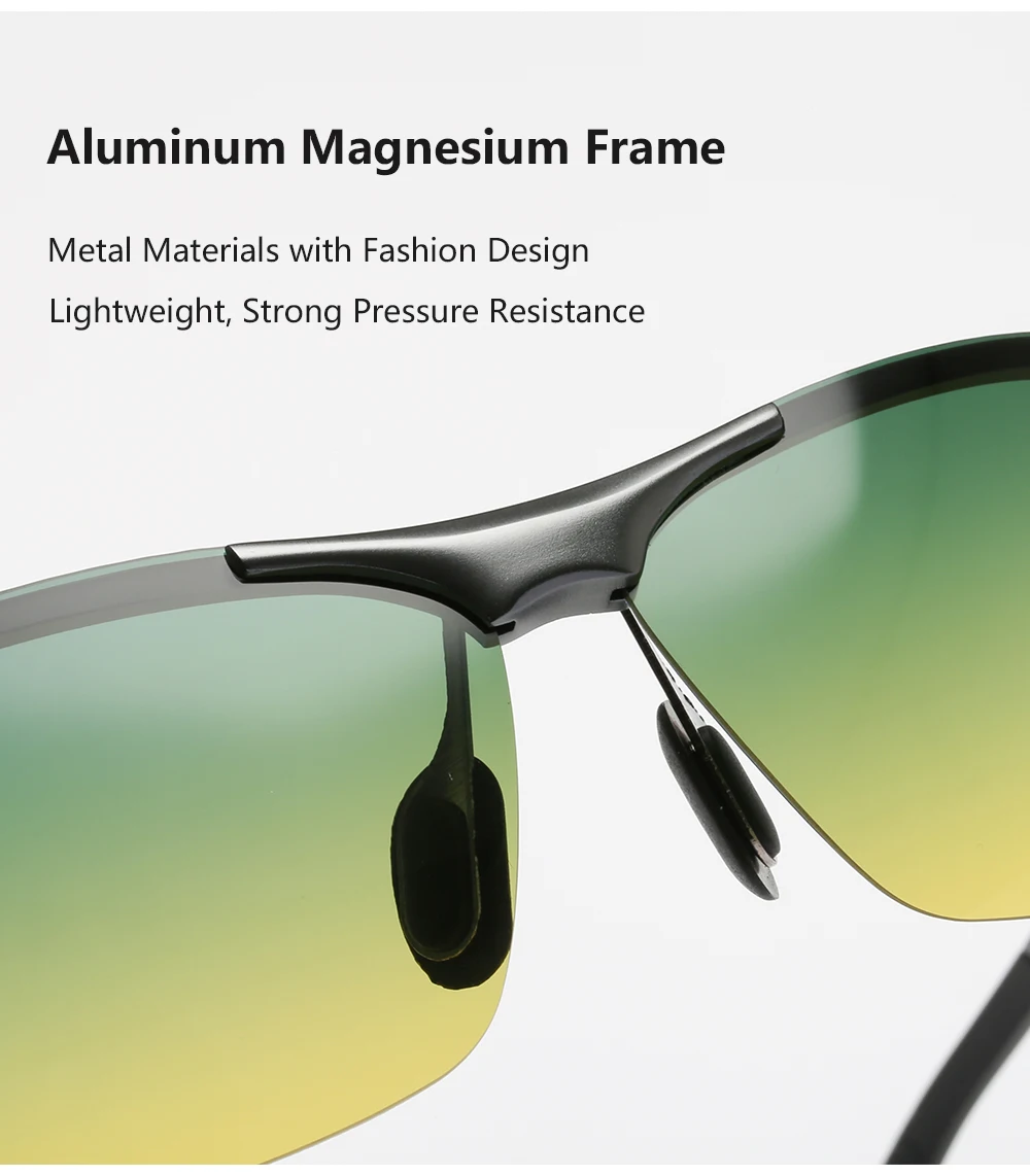Sunglasses For Men Day Glasses For Night Vision Photochromic Outdoor Driving Rimless Male Polarized UV400 Lens VT2173