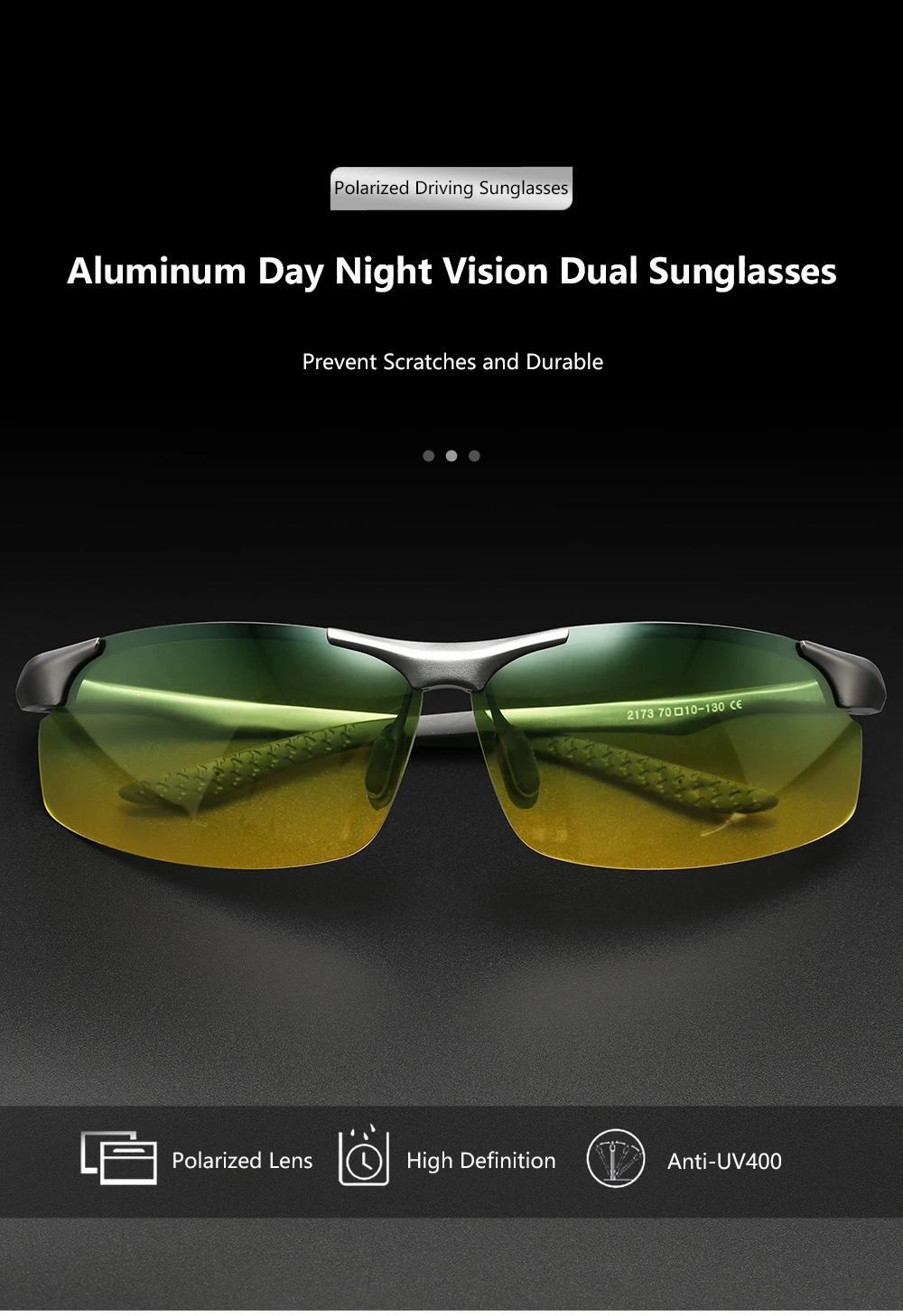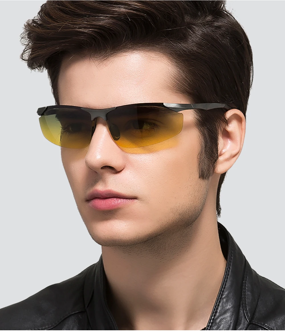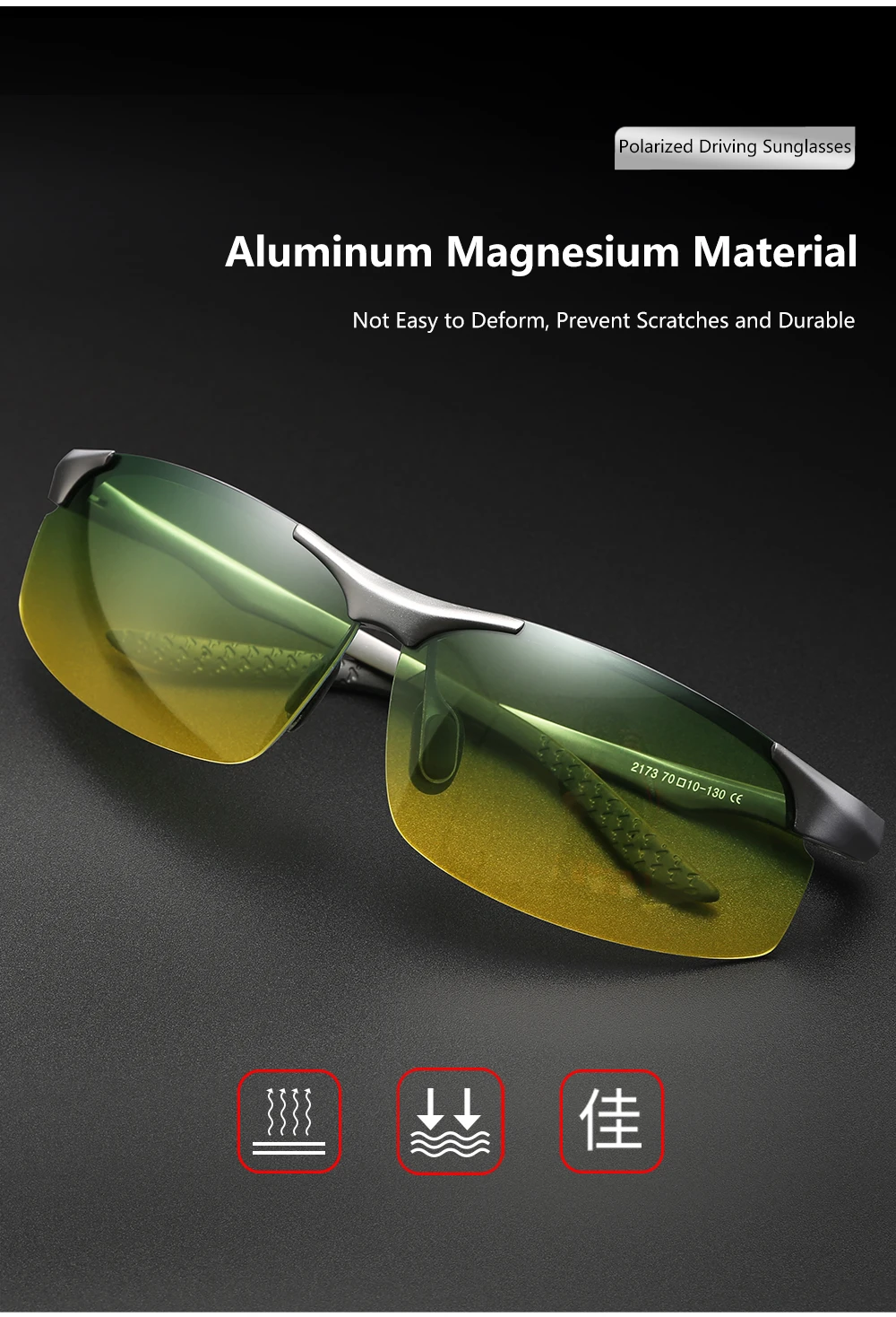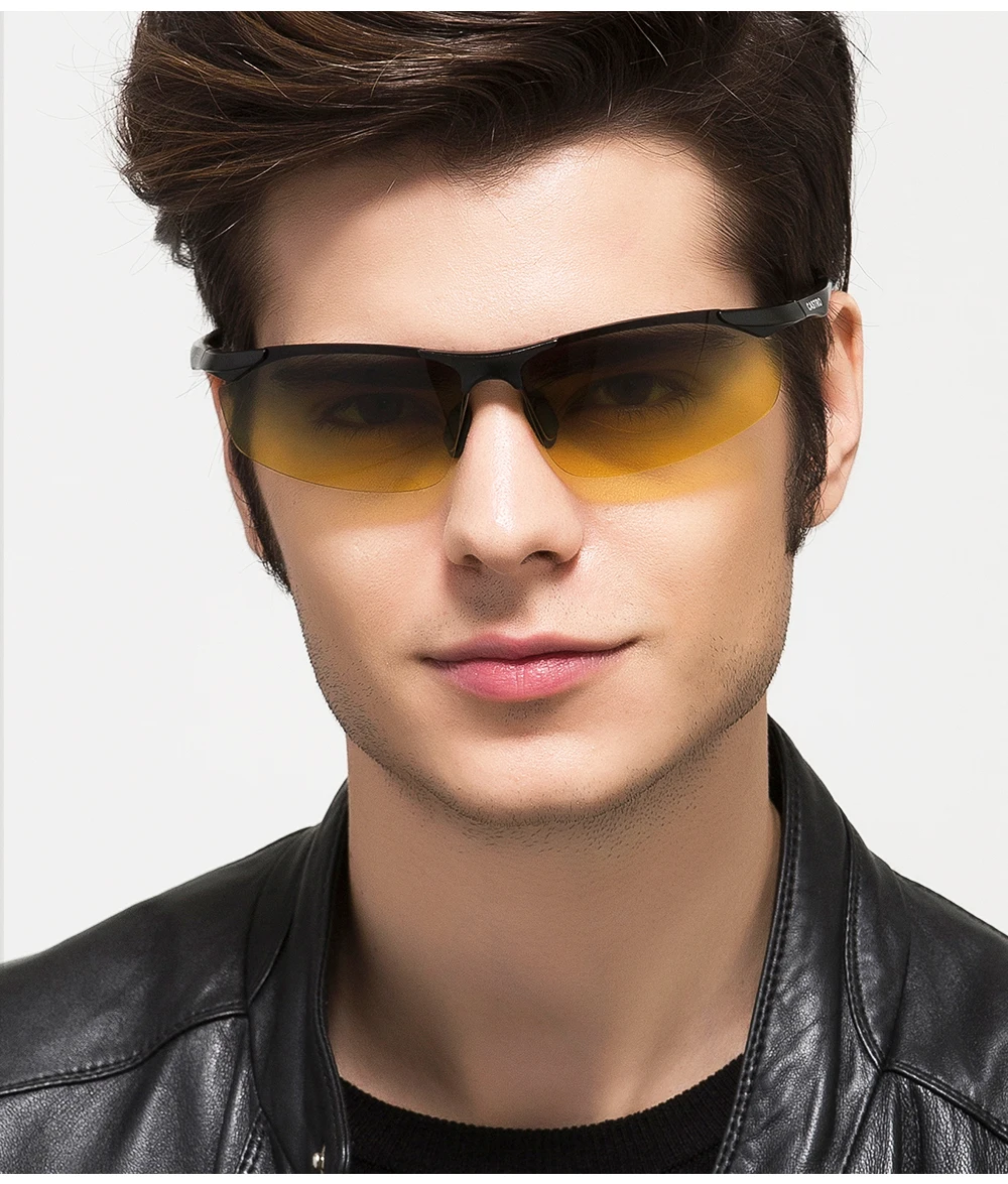 Sunglasses For Men Day Glasses For Night Vision Photochromic Outdoor Driving Rimless Male Polarized UV400 Lens VT2173