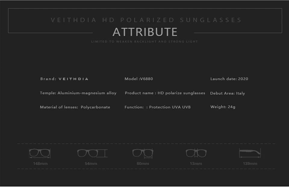 VEITHDIA Brand Sunglasses Men Aluminum Magnesium Polarized UV400 Lens Women Eyewear Accessories Male Sun Glasses V6880