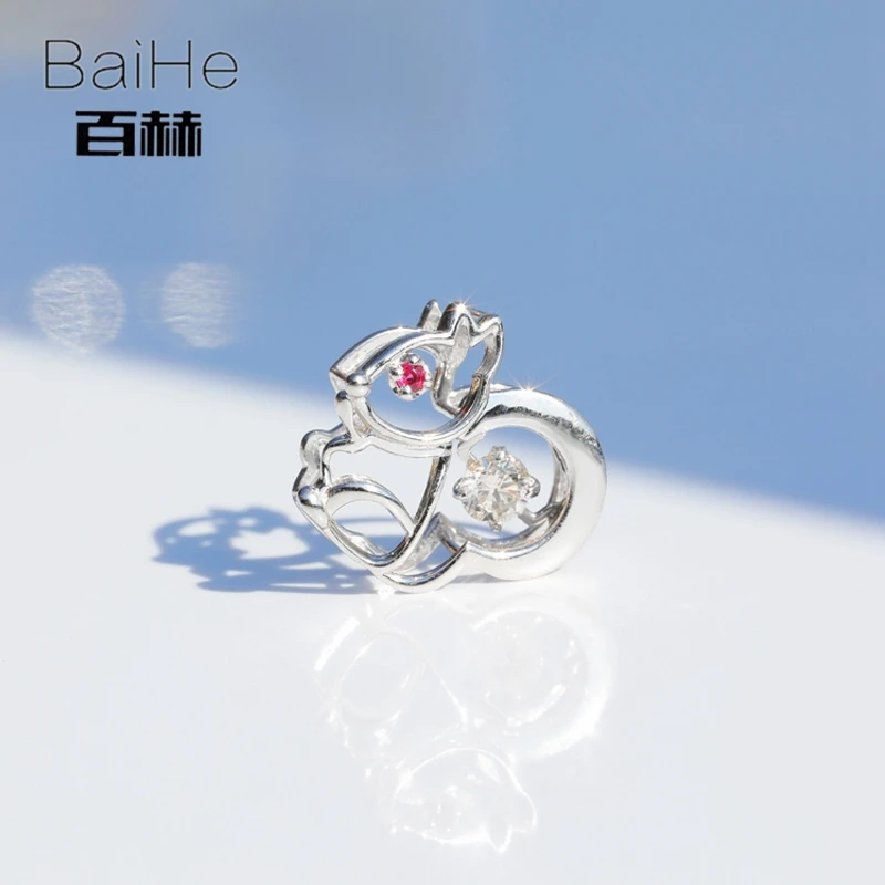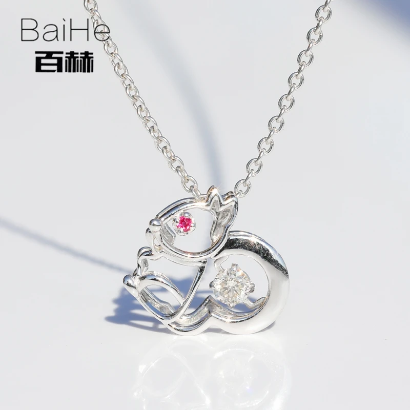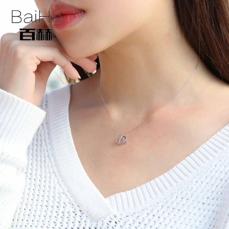 BAIHE Solido 14K Oro Bianco 0.08ct Certificato H/SI Rotondo 100% Genuino Diamanti Naturali Da Sposa Donne Alla Moda Gioielleria Raffinata Collane
