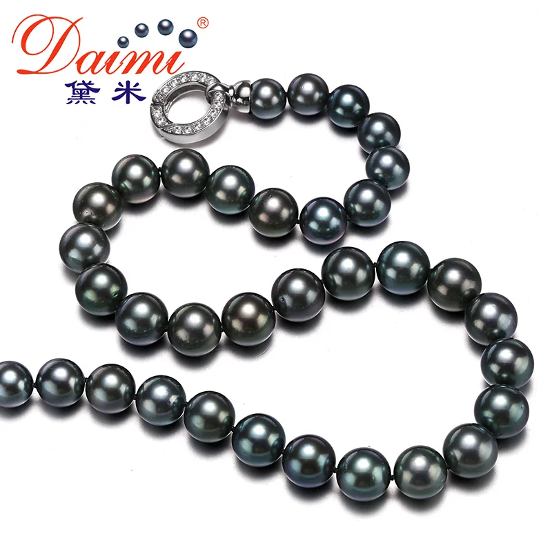9.5-12MM Big Black Tahitian Pearl Necklace Rare Natural Pearl Choker Necklace Classic Pearl Necklace Anniversary Present