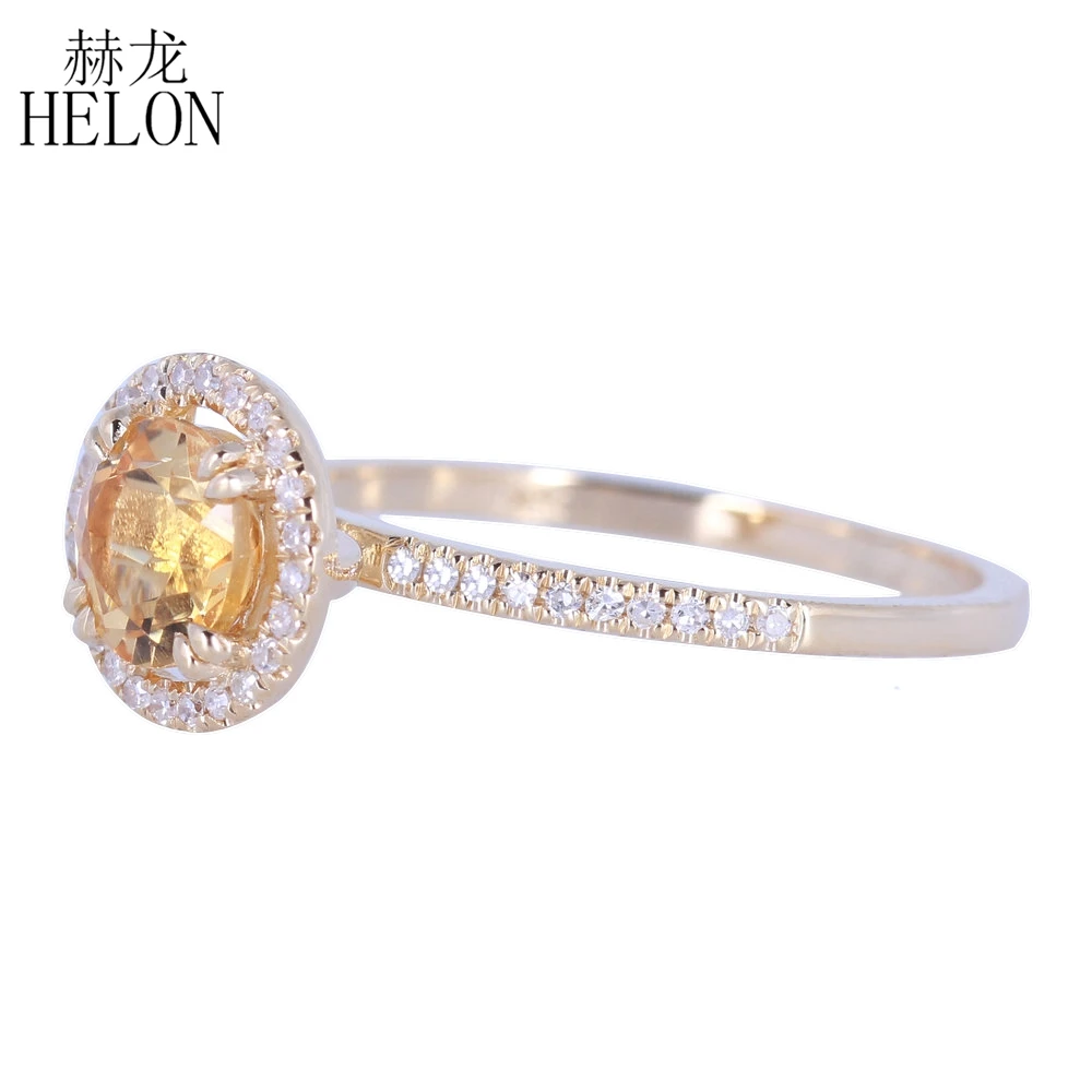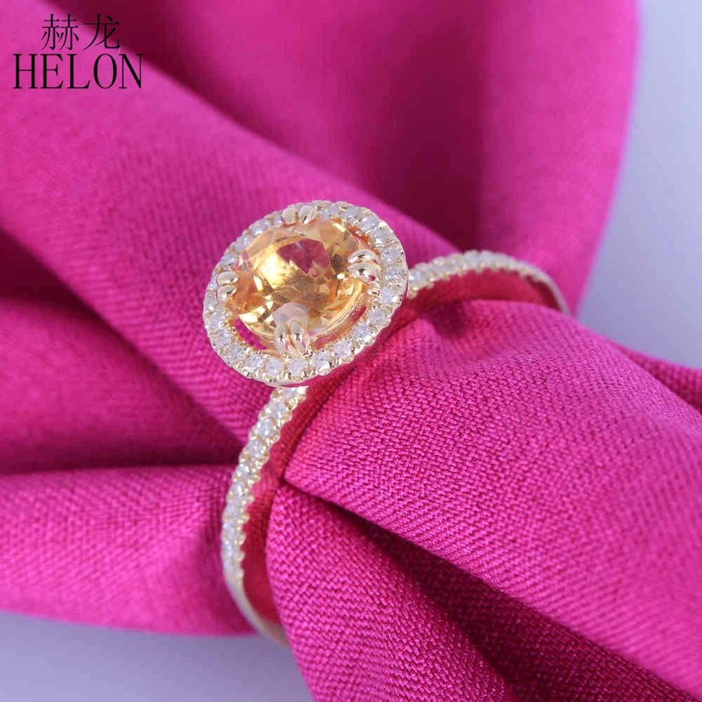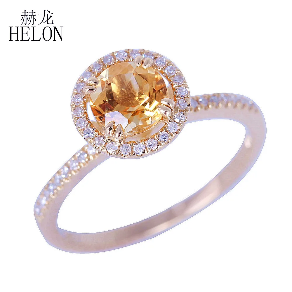 Anello di fidanzamento con diamanti pregiati Halo Anello in oro giallo massiccio 14k da 6,5 mm Anello con citrino e diamanti genuini rotondi Gioielli da donna
